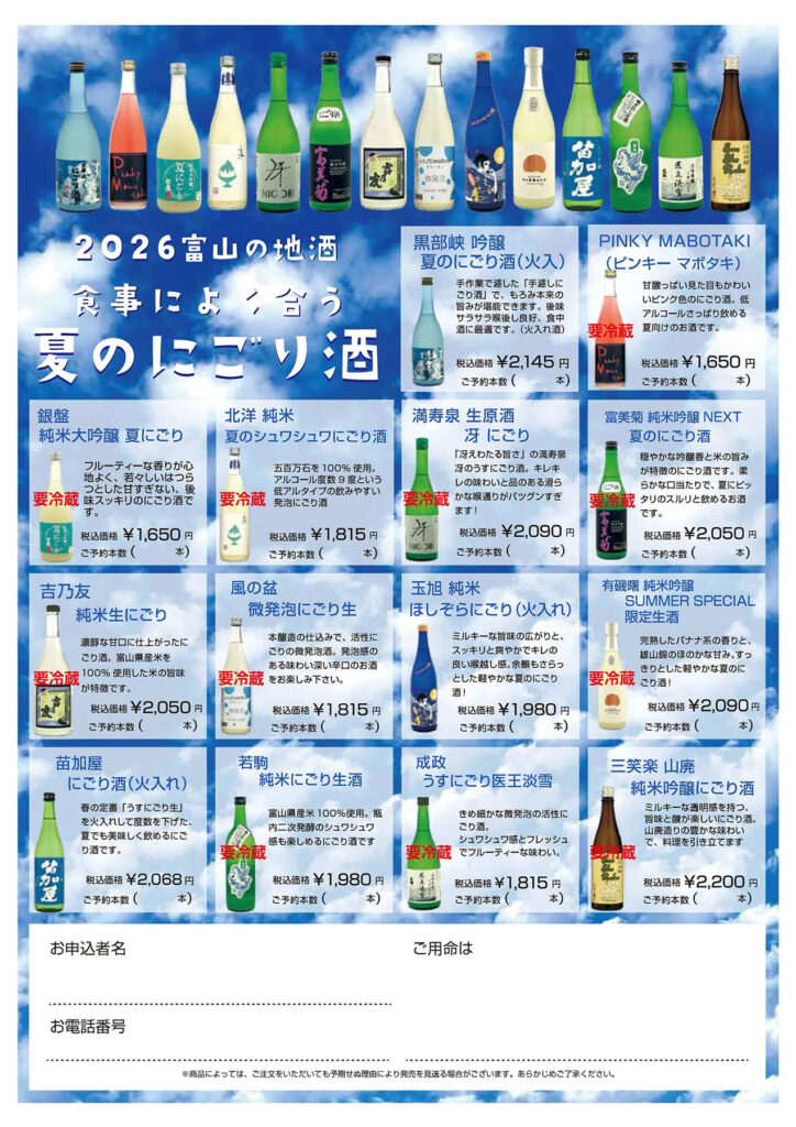 - ▶︎ 2026年4月20日富山の夏のにごり酒予約開始のお知らせ
